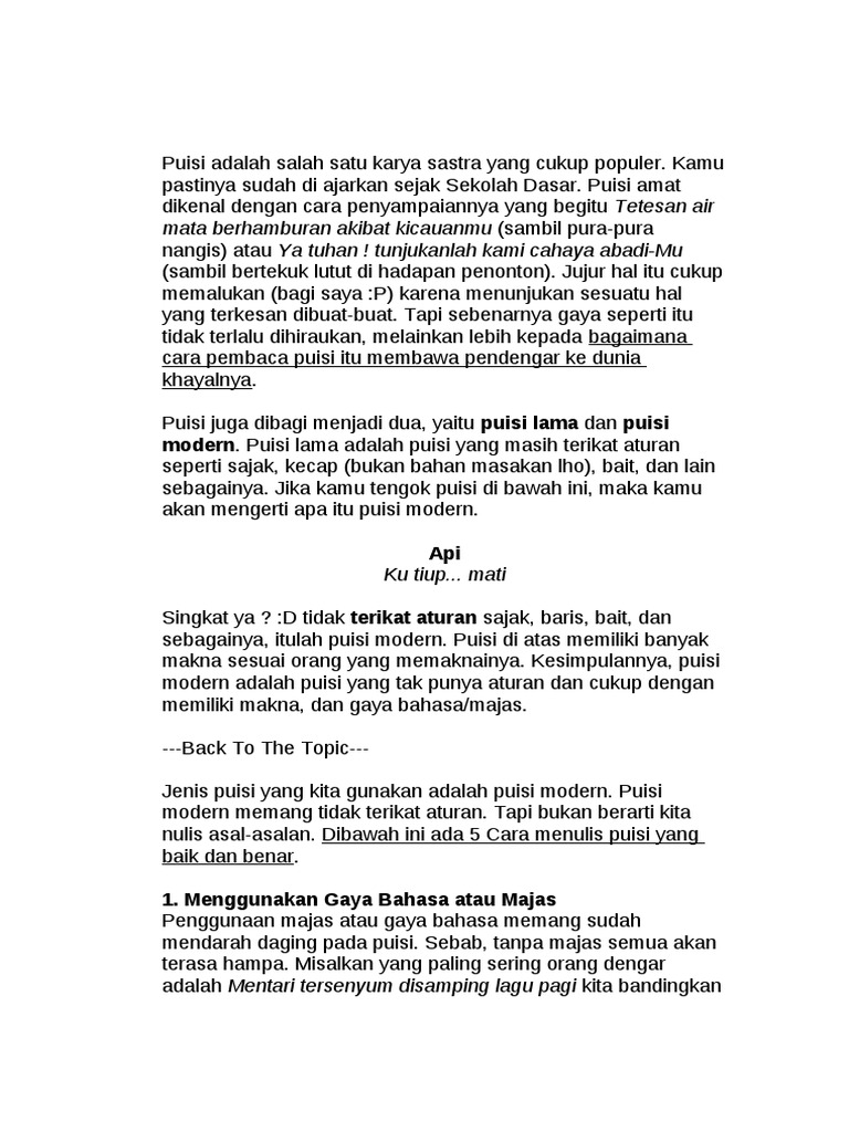 21 Terang naon anu anjeun badé nyerat sajak. Baik sahabat sajak langsung saja inilah Cara Menulis Puisi Bagi Pemula. Gaya bahasa adalah bagaimana cara pengarang dalam mengungkapkan apa yang dipikirkannya dengan bahasa yang khas yang mencirikan karakter jiwa seorang pengarang.
